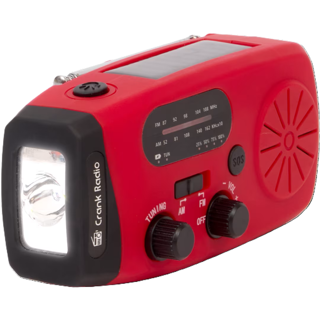 Mit AM/FM-Radio bleibst du erreichbar für Wetterwarnungen und Notfallmeldungen – auch ohne Mobilfunknetz.