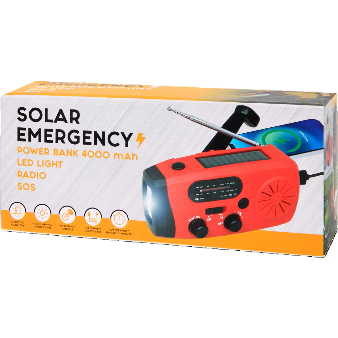 Notfallradio (Solar & Kurbel), Powerbank (4000 mAh) , LED-Licht & SOS-Funktion